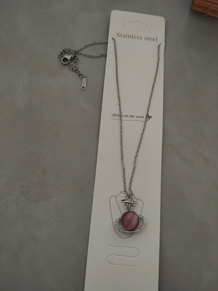 Gri Zincir Detaylı Pembe Kadın Kolye
