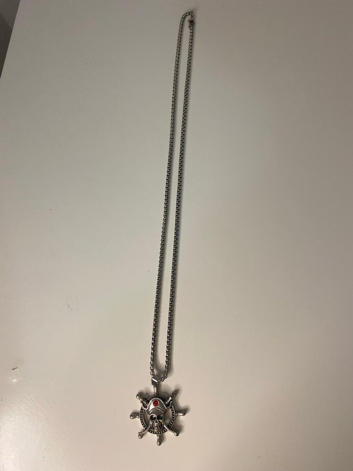 Gri renkli, zincir detaylı, yılan desenli rock punk tarzda günlük kullanıma uygun kolye.