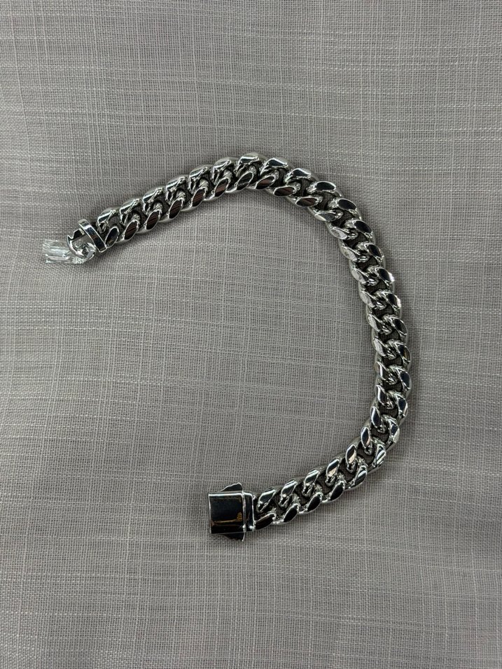 Gri zincir detaylı, unisex bilekliği, günlük kullanım ve minimalist sokak tarzı için uygundur.