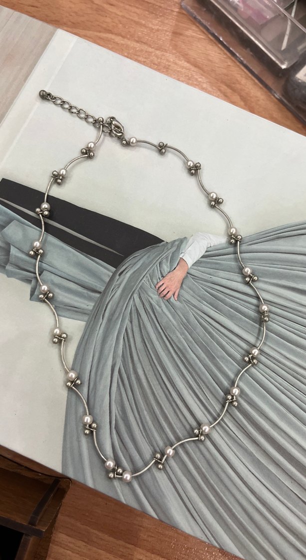 Gri renkte, zincir detaylı uzun kolye, çağdaş ve avangart tarzıyla günlük kullanıma uygundur.