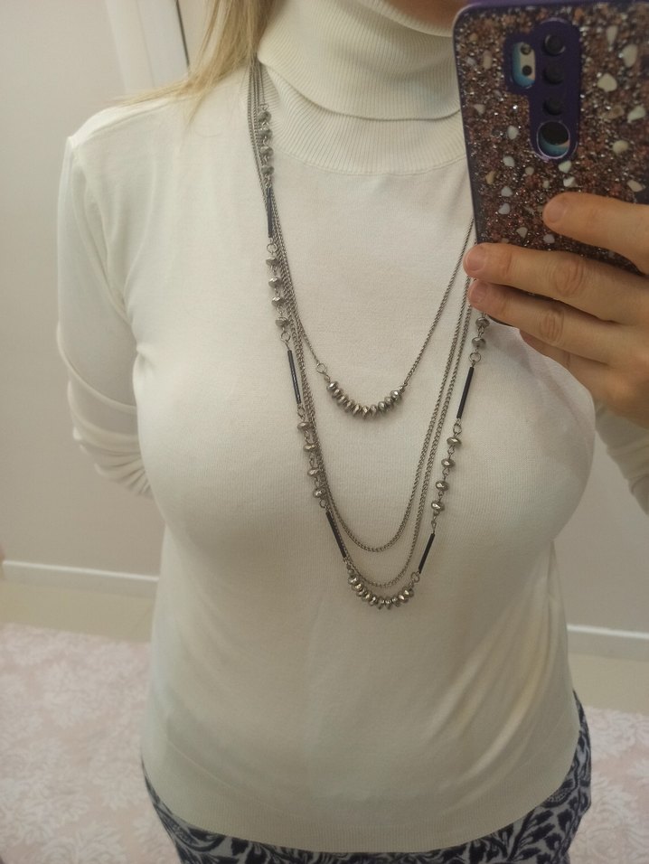 Gri renkli, zincir detaylı uzun kolye, minimalist ve gotik tarzda, günlük kullanıma uygun. Bohem, hippie ve retro stillerle uyum sağlar.