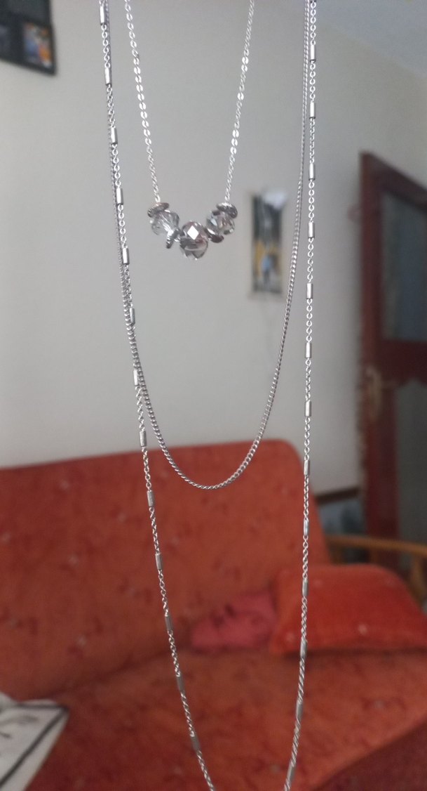 Uzun, gri renkte zincir detaylı kolye. Minimalist ve çağdaş tasarıma sahip, günlük kullanıma uygundur. ✨ fiyat tekliflere açıktır, makul sekilde