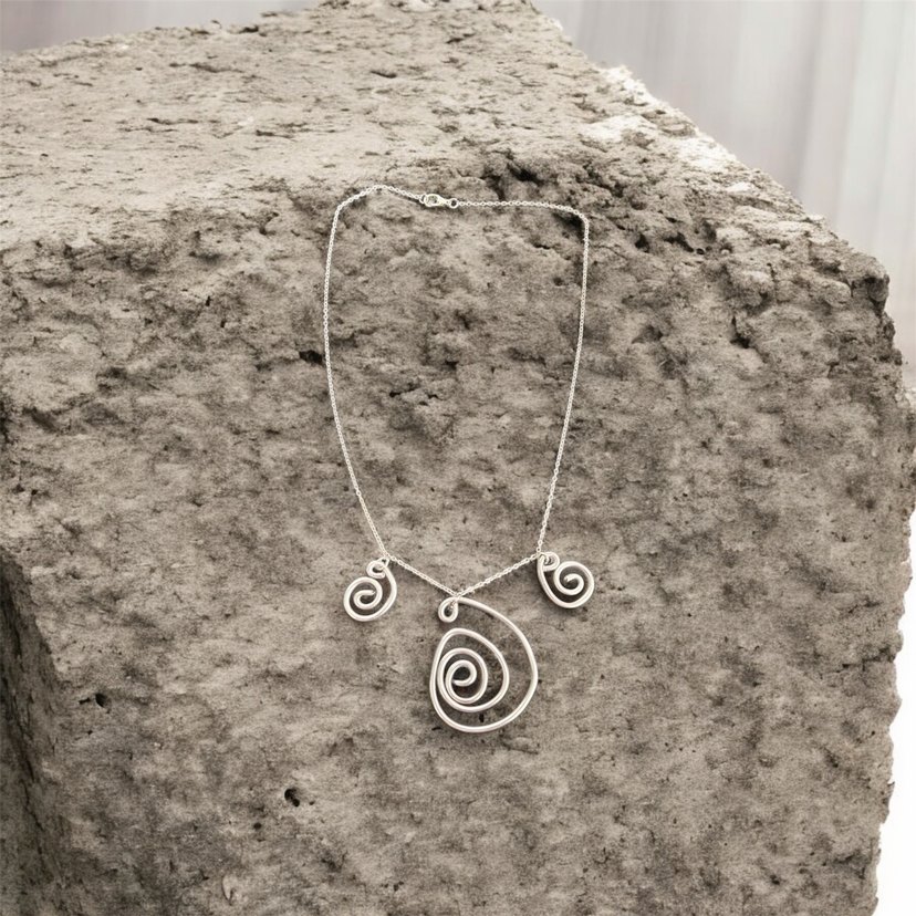 Bu uzun gri kolye, zincir detayları ve spiral uçlarıyla minimal ve bohem tarzları günlük kullanım için birleştirir. Gotik