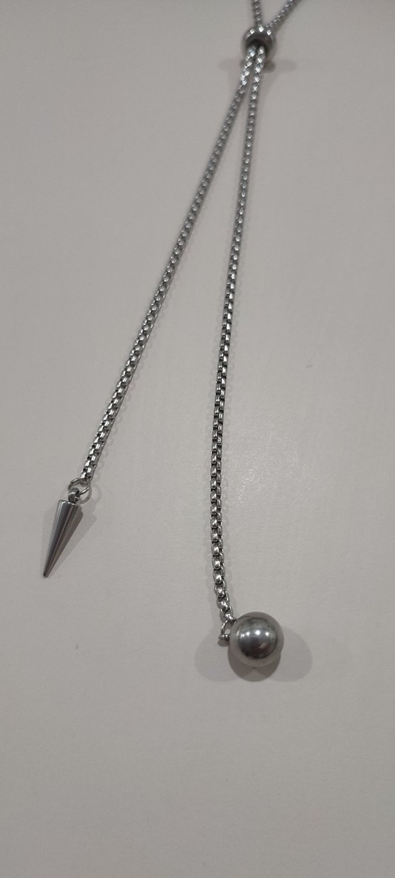 Gri renkte, zincir detaylı ve punk tarzı vurgulu uzun kolye. Günlük kullanıma uygun, unisex şık tasarım. ⚡