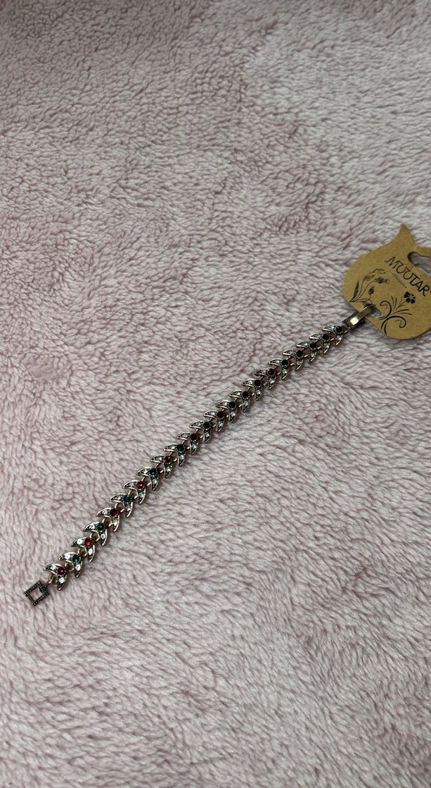 Bohem tarzda, gri tonlarda çok renkli yılan desenli zincir detaylı kadın bilekliği. Günlük kullanıma uygun vintage bir model.