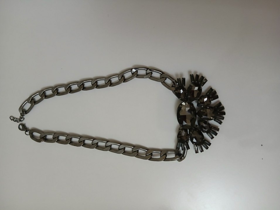 Gri Zincir Detaylı Yılan Desenli Gotik Kadın Kolye