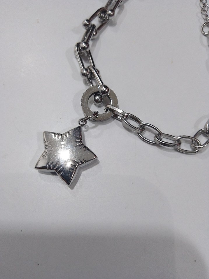 Gri zincir detaylı, parlak yıldız figürlü minimalist rock punk tarzında bileklik Günlük kullanım için uygun. ⭐