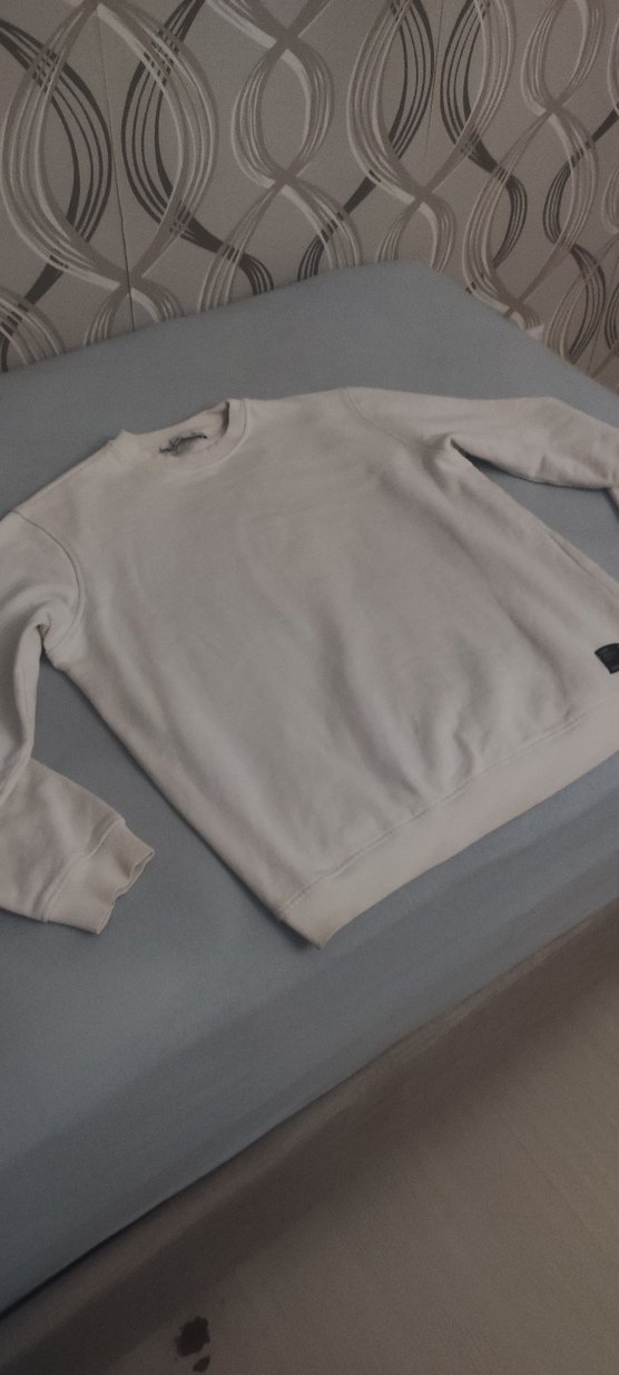 Beyaz renkte, yuvarlak yakalı ve uzun kollu sweatshirt, rahat kesimi ve yumuşak kumaşıyla günlük sokak stili sunar. Grimelange markadır orijinaldir.