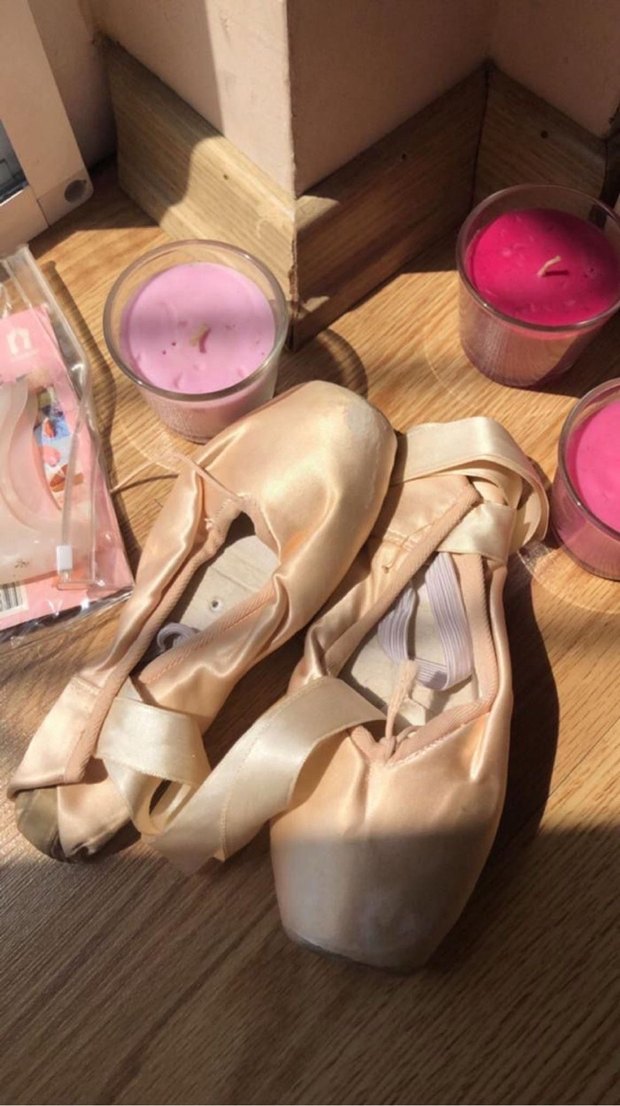 pointin ucuna deri parçası yaptırılmış kaymasını önlemek için, kurdele ve lastik görseldeki gibi dikili ve az da olsa kullanılmış, pointin yanında görseldeki pamuk uçlukları da veriyorum, numarası 5 xxx m internette hem 37 yazan var hem 38 var ikisinin arası 37,5 dedim numaraya