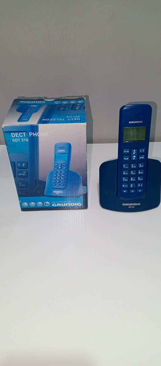 Grundig GDT 310 koyu mavi DECT telefon, net ekran ve kullanımı kolay tuş takımı ile kablosuz iletişim sağlar.Temiz ve sağlamdır.
