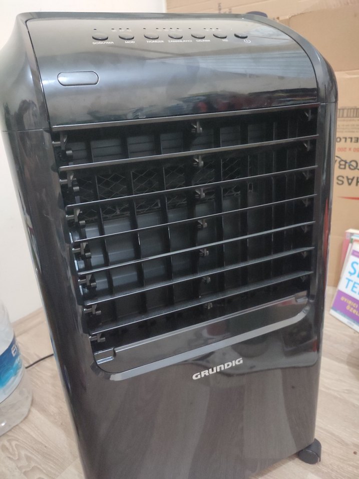 Bu siyah Grundig taşınabilir vantilatör, üstte çoklu kontrol düğmeleriyle ayarlanabilir özellikler sunar. Yatay panjurlarla etkili hava sirkülasyonu sağlar. garanti devam ediyor, 1 ay oldu aLınalı, hayırlı olsun. kumanda, kutu, buz küpleri ile yollanacaktır