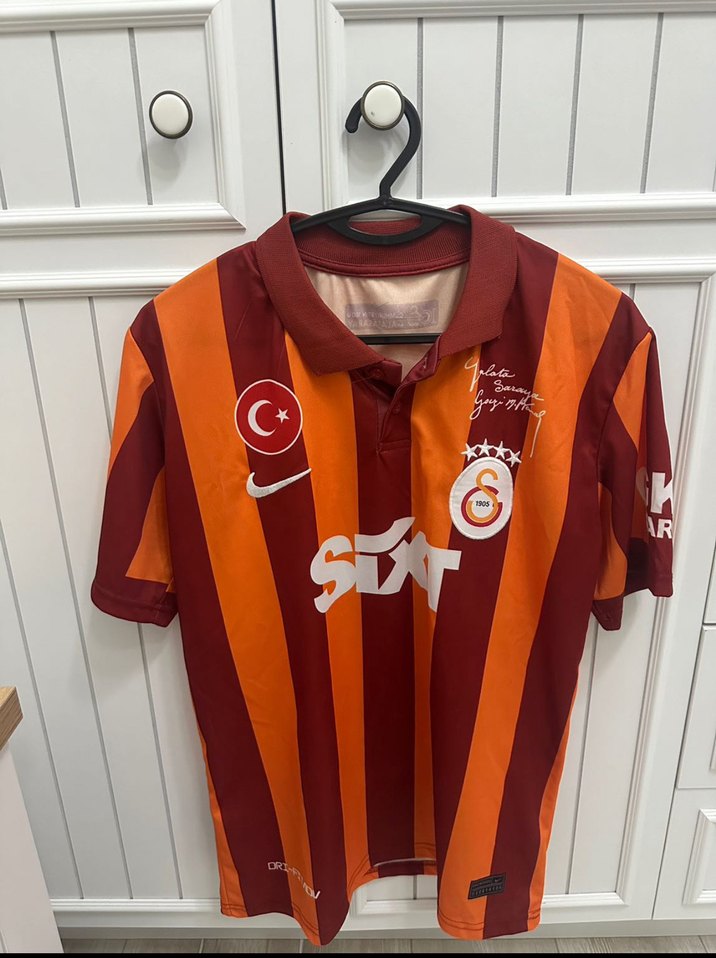 Düğmeli, kısa kollu, bisiklet yaka ve dar kesim erkek forma. Hiç bir defosu yoktur