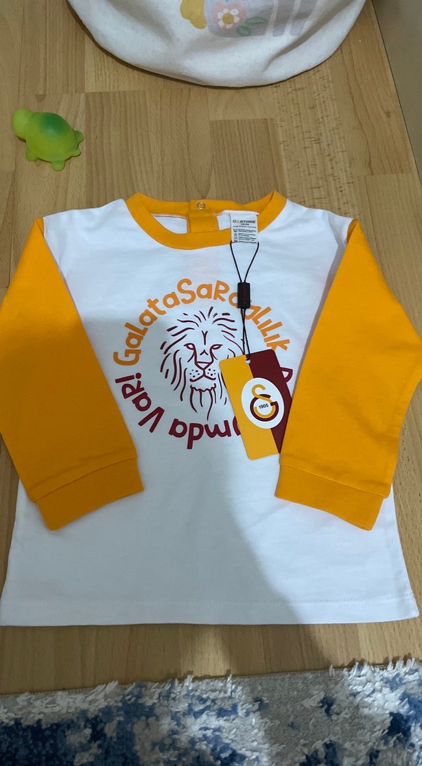 Kız çocuk tişörtü, uzun kollu ve yuvarlak yakalıdır. Yumuşak ve sıcak kumaştan yapılmış, bol kesim ve baskılı desenlidir. Sarı kolları ve beyaz gövdesi vardır.