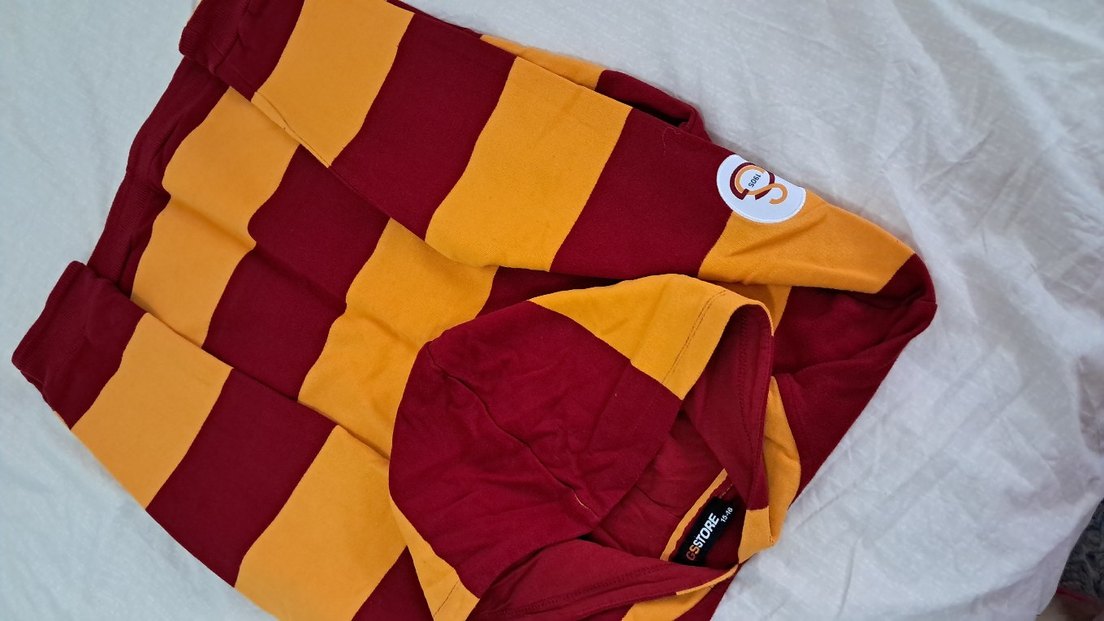 Bordo ve sarı renklerde, uzun kollu, tekne yakalı, sportif tarzda erkek sweatshirt. Rahat ve fit kesim.