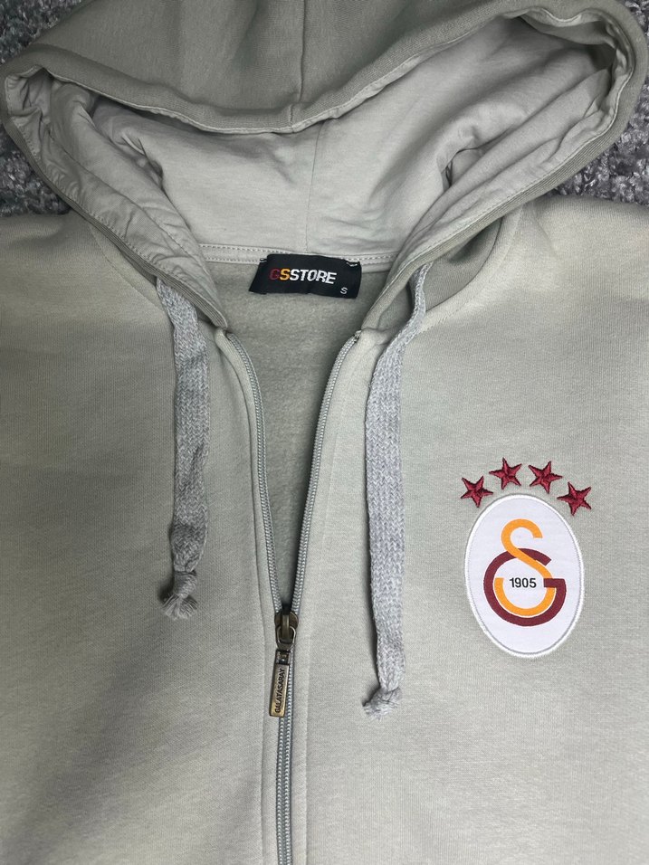 GSSTORE imzalı gri fermuarlı erkek sweatshirt. Yumuşak fleece kumaştan, uzun kollu ve baskılı detaylı, spor ve günlük kullanıma uygun, dar kesim.
