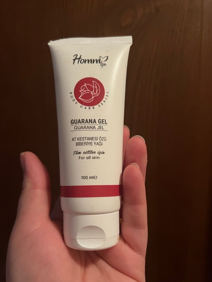 Guarana jeli, at kestanesi özü ve biberiye yağı içeren, tüm cilt tipleri için uygun 100ml el kremi.