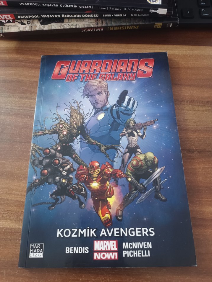 Guardians of the Galaxy: Kozmik Avengers Ne oldu da Dünya birdenbire galaksinin en önemli gezegeni oluverdi? İşte Galaksinin Koruyucuları bu sorunun cevabını bulacak! Marvel NOW döneminin en bombastik ve en şaşırtıcı hikayelerinden birinde Star-Lord, Gamora, Drax, Rocket Raccoon, Groot ve Yenilmez Iron Man’e eşlik etmeye hazır olun! Galaktik Avengers ekibinin açığa çıkaracağı sırlar Marvel okurlarının zihinlerini yıllarca meşgul edecek! Londra vahşi bir Badoon istilası ile uğraşırken, milyonlarca kilometre ötede Koruyucular’ın kaderine karar verilecek! Filmi beklemeye ne gerek var? Hikayenin başlangıcı bu ciltte! Bu ciltte Guardians of the Galaxy (2013) #1-3, #0.1 ve Guardians of the Galaxy: Tomorrow’s Avengers #1 sayıları bir araya getirilmiştir. Yazar Brian Michael Bendis, çizerler Steve McNiven ve Sara Pichelli, kısa öykülerin çizerleri Yves Bigerel, Michael Del Mundo, Michael Avon Oeming ve Ming Doyle. 144 sayfa çok temiz