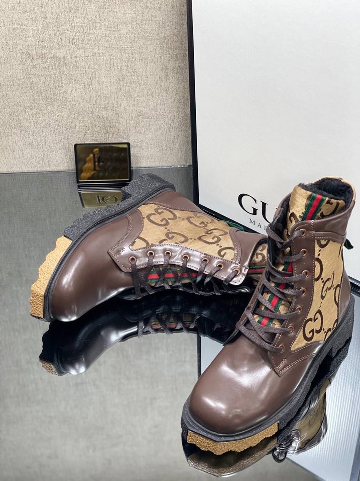 Gucci markalı, koyu kahverengi deri ve desenli, tokalı platform topuklu kadın botu, trend sokak stiline uygun. İthal kalite Yeni sezon Tam kalıp Bağcıklı Kauçuk taban Sıfır ürün Kutulu gönderim sağlanır. Stok sınırlı Lütfen sipariş vermeden önce iletişime geçiniz.