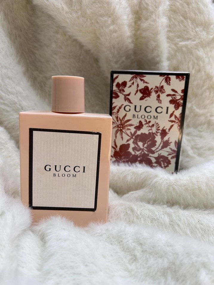 Gucci Bloom, çiçek desenli kutusu ve yumuşak pembe şişesiyle kadınlar için çiçeksi bir parfümdür.