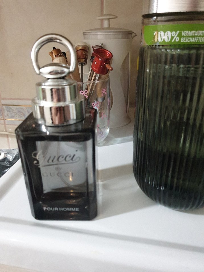 Gucci Pour Homme erkek parfümü, gri ve bej renkli şişesi ile karşı kültür Paris tarzını yansıtıyor. Üzerinde "POURHOMME, 100%" yazıyor. 90 milimlik şişesinde 80 milim kadar var resimlerde koku içeriği bulunmaktadır tercihen bayanlarda kullanabilir Harika bir kokusu vardır