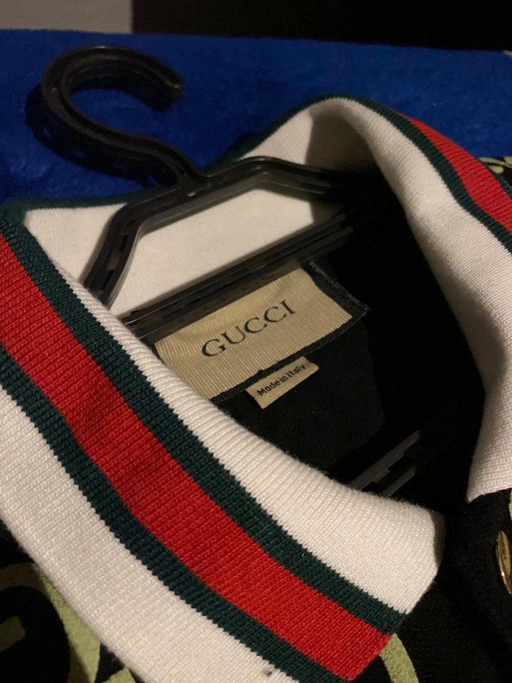 Gucci markalı, çok renkli ve baskılı desene sahip, Polo yaka