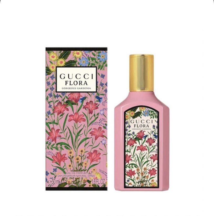 Gucci Flora Gorgeous Gardenia, çiçek desenli şişesi ve kutusuyla kadınlar için taze ve zarif bir koku sunar.