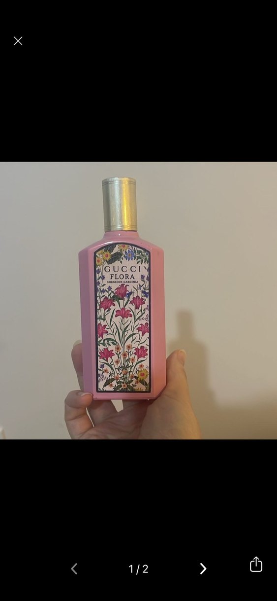 Gucci Flora kadın parfümü, pembe şişesi ve çiçek desenleriyle zarafet ve ferahlık sunar.