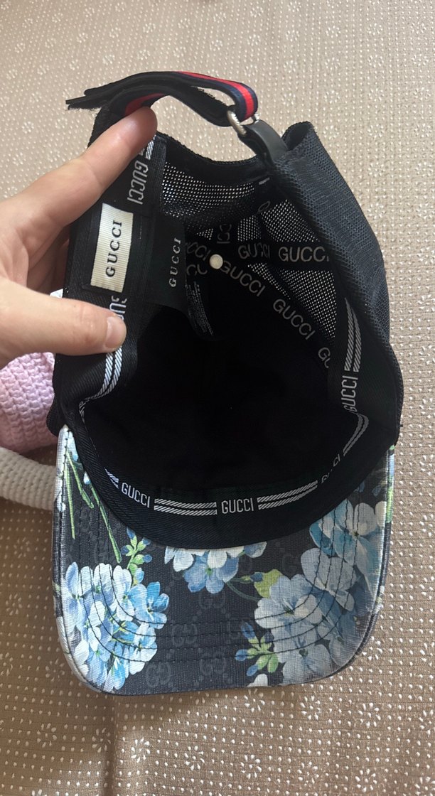 Gucci markalı, gri çiçek desenli siperliği ve iç kısmında logo detayları bulunan erkek sokak stili şapkasıdır. Trendy ve athleisure tarz için uygundur.