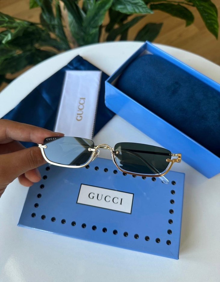 Gucci marka, şeffaf ve parlak mavi çerçeveli, minimalist sokak modası tarzında kadın gözlüğü, klasik zarafeti yansıtıyor. ️