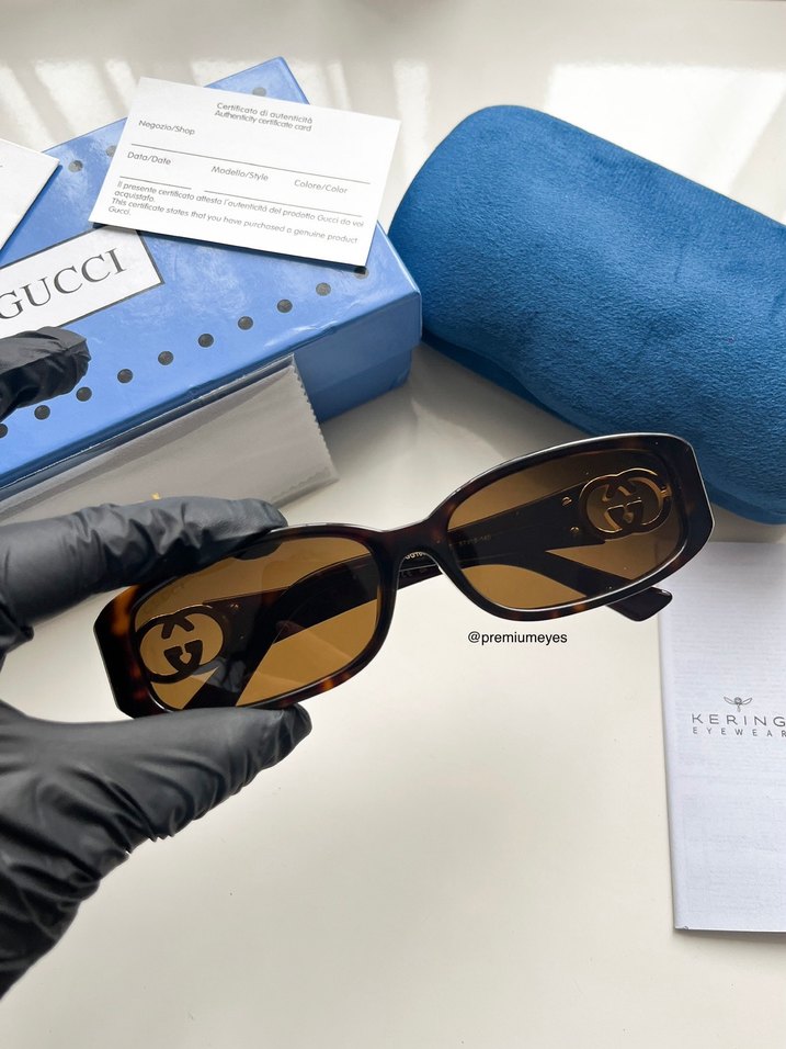 Kahverengi şeffaf çerçeveli, sokak stiline uygun kadın güneş gözlüğü. GUCCI logosu ile trend ve kaliteli tasarım. ️