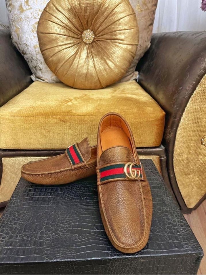Gucci marka Kahverengi Deri Tokalı Erkek Klasik Loafer