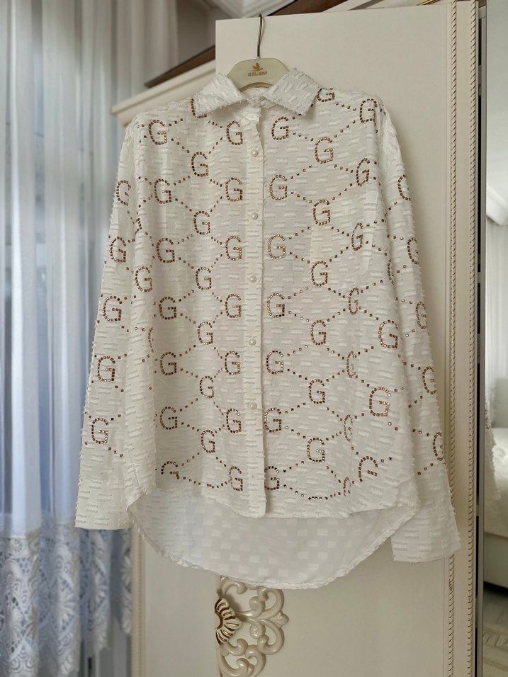 Pamuklu, nakışlı ve düğmeli beyaz gömlek. Uzun kollu, yakalı ve bol kesimdir, günlük sokak tarzına uygundur. ürün kullanılmamıştır yıkanmıştır.40 42 44 beden uyumludur.