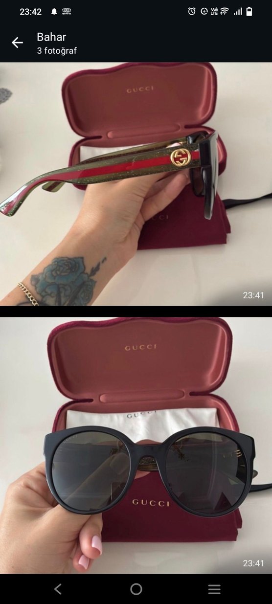 Parlak gri Gucci kadın gözlüğü, sokak modasına uygun Paris esintili tasarıma sahip. Korumalı kutusu ve belirgin logo detayları bulunur. ️