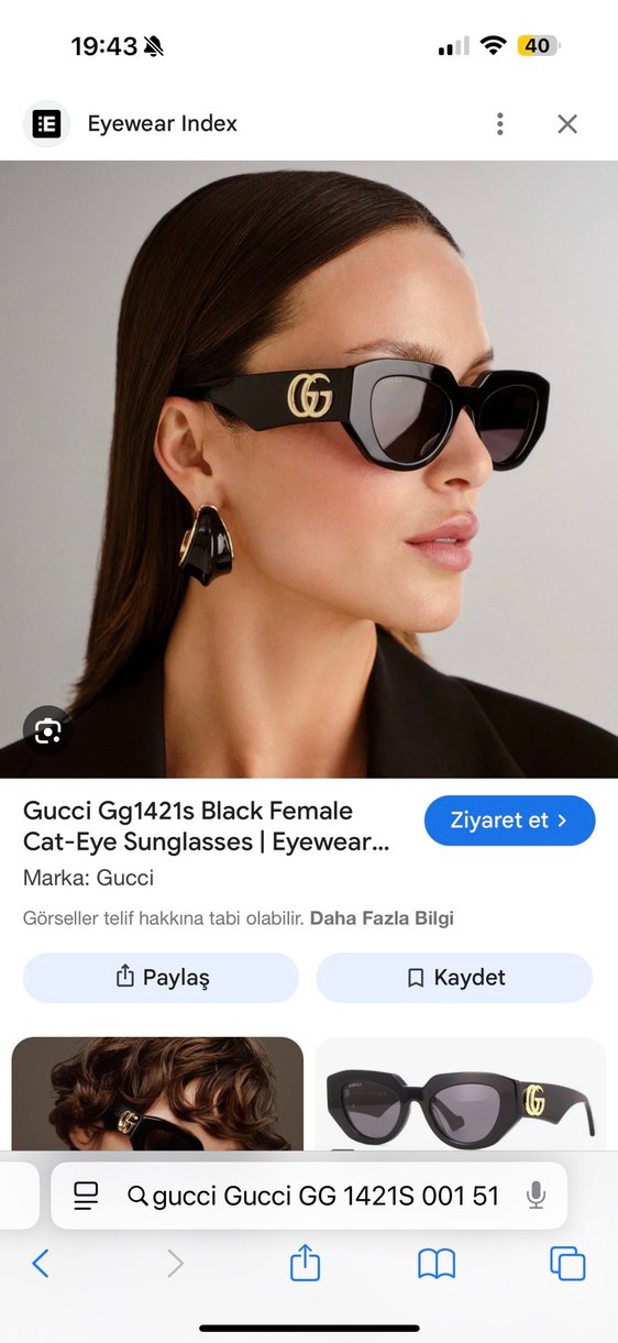 Gucci Siyah Parlak Cat-Eye Kadın Güneş Gözlüğü