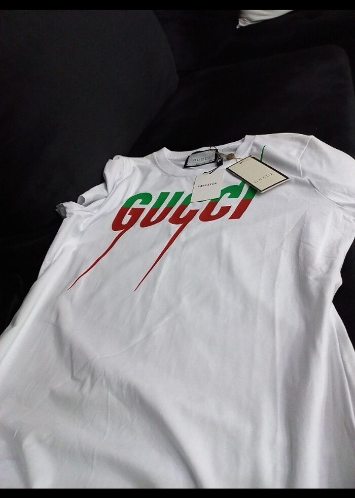 Gucci tişört etiketli bazı yerlerinde beklemekten kaynaklı sararma var yıkanırsa geçer