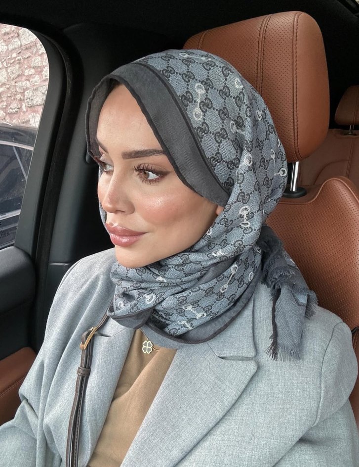 Kadınlar için gri renkte, suni kumaştan drapeli tasarıma sahip, gösterişli sokak modasına uygun şal.