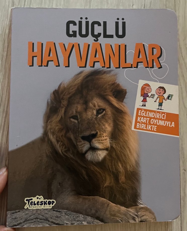 Güçlü Hayvanlar adlı kart oyunu, kapakta aslan resmiyle eğlenceli ve birlikte oynanabilen kartlar içerir.