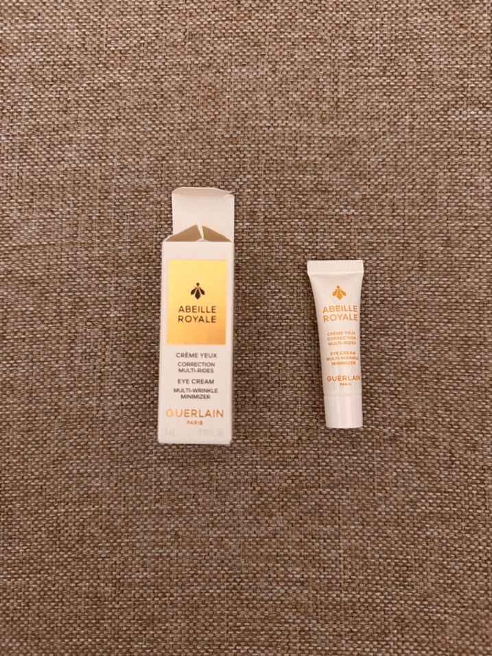 Guerlain Abeille Royale göz kremi, kırışıklıkları azaltmak ve göz çevresini iyileştirmek için tasarlanmıştır. Küçük tüp ve ambalaj içinde sunulur.