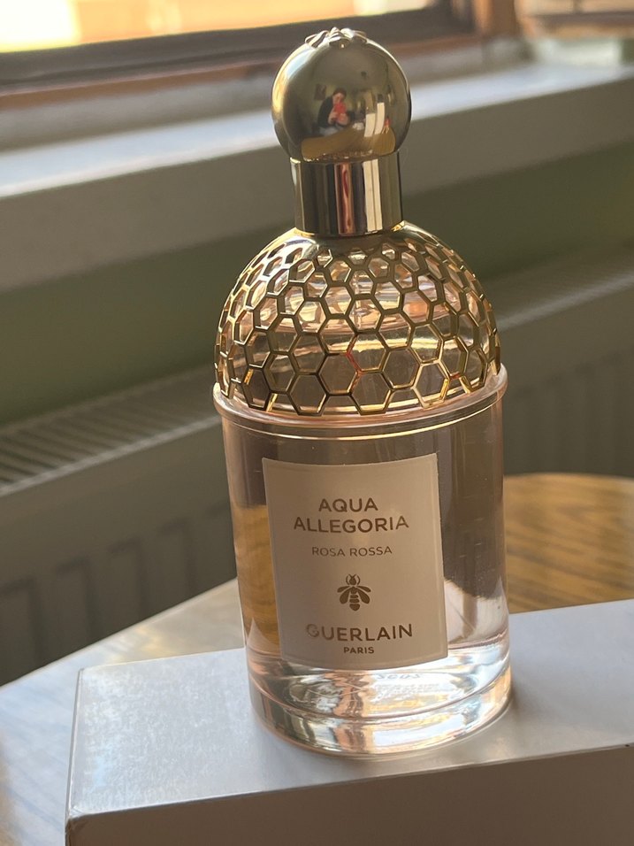 Guerlain Aqua Allegoria Rosa Rossa parfümü, altın petek desenli kapak ve yumuşak pembe sıvısıyla zarif bir tasarıma sahiptir. Kadınlar için hafif çiçeksi bir koku sunar. Ürün birkaç ml eksiktir. Müşteriye koklatma amaçlı eksilmiş olup kullanılmamıştır. 125 ml e yakındır.