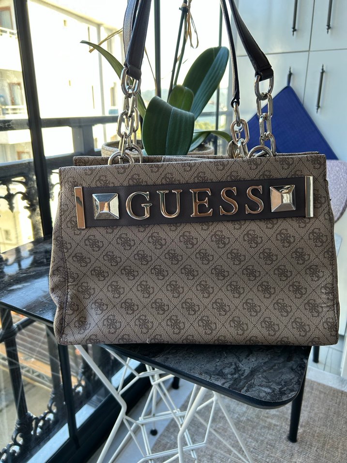 Kahverengi deri çanta, baskılı deseni ve tokalı detaylarıyla günlük sokak stili için uygun. Sıfıra yakındır hiç bir sorunu yoktur zincir kumaş vs.de En son fotoğrafta bellidir sadece ön tarafta bi sıyrık vardır dikktle bakılınca anca gözüküyor normal bakıldıgında farkedilmiyor bile