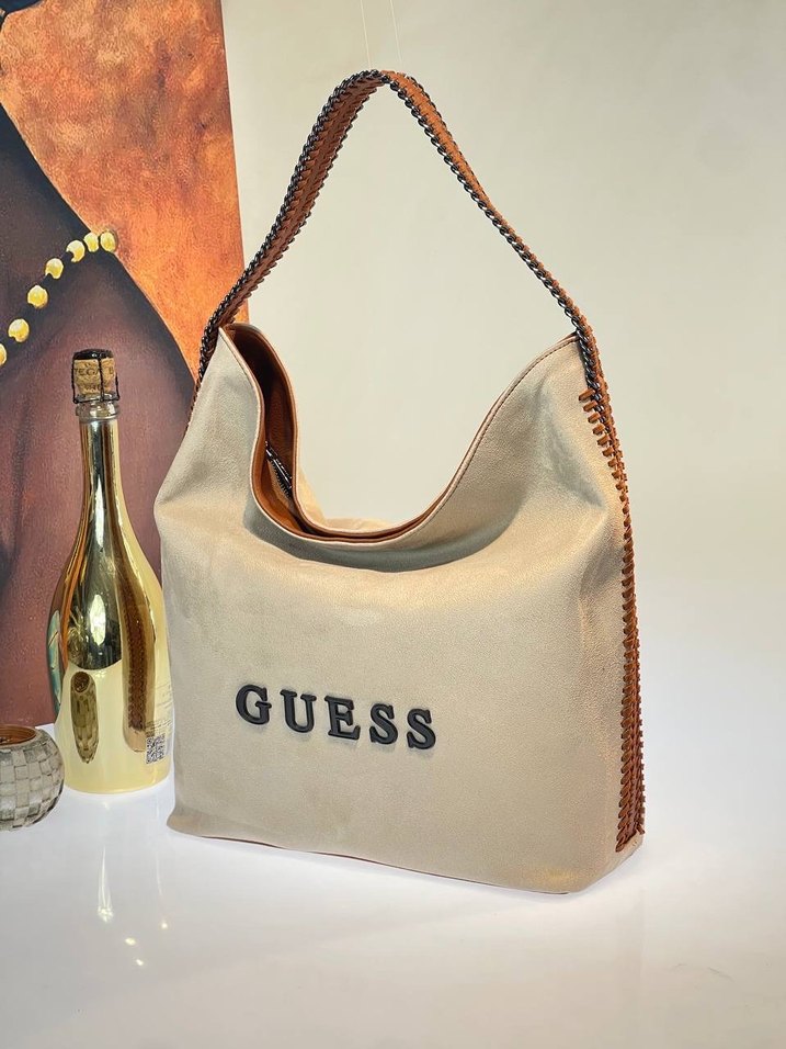 Guess Bej Süet Fermuarlı Kadın Çanta