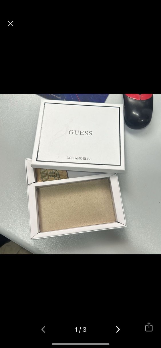 Guess markasının beyaz allık kutusu, kapağında logo ve 'Los Angeles' yazısı bulunur. İç kısmında ürün için bej renkli yer var. Boş kutudur