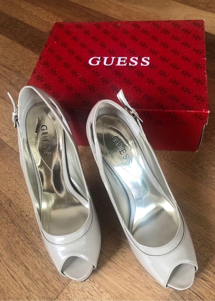 Orjinal kutusunda İçi altın renkli Topuk 12 cm ama 2.5 cm platform sayesinde rahat ABD’den alınmıştır (8M numara) KULLANILMAMIŞTIR #guesstopukluayakkabı #guess #platformtopuklu #bejrengitopuklu #guessayakkabı #bejtopuklu #peeptoe #burnuaçıktopuklu #abiyeayakkabı
