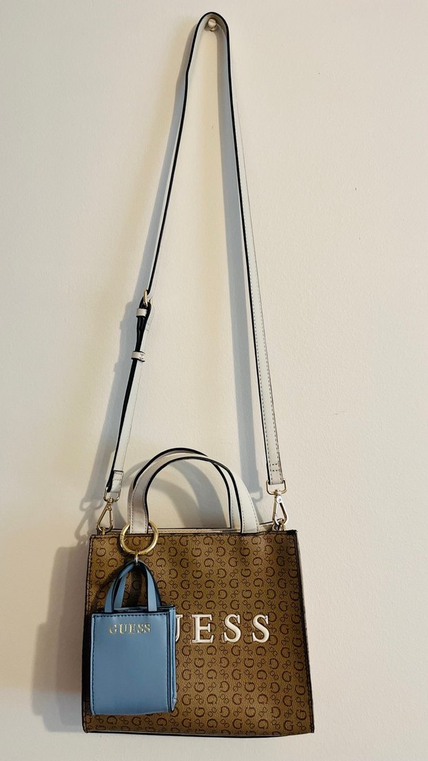 Hem el hem omuz çantası, yanında küçük mavi çanta detaylı, orjinal kadın çanta