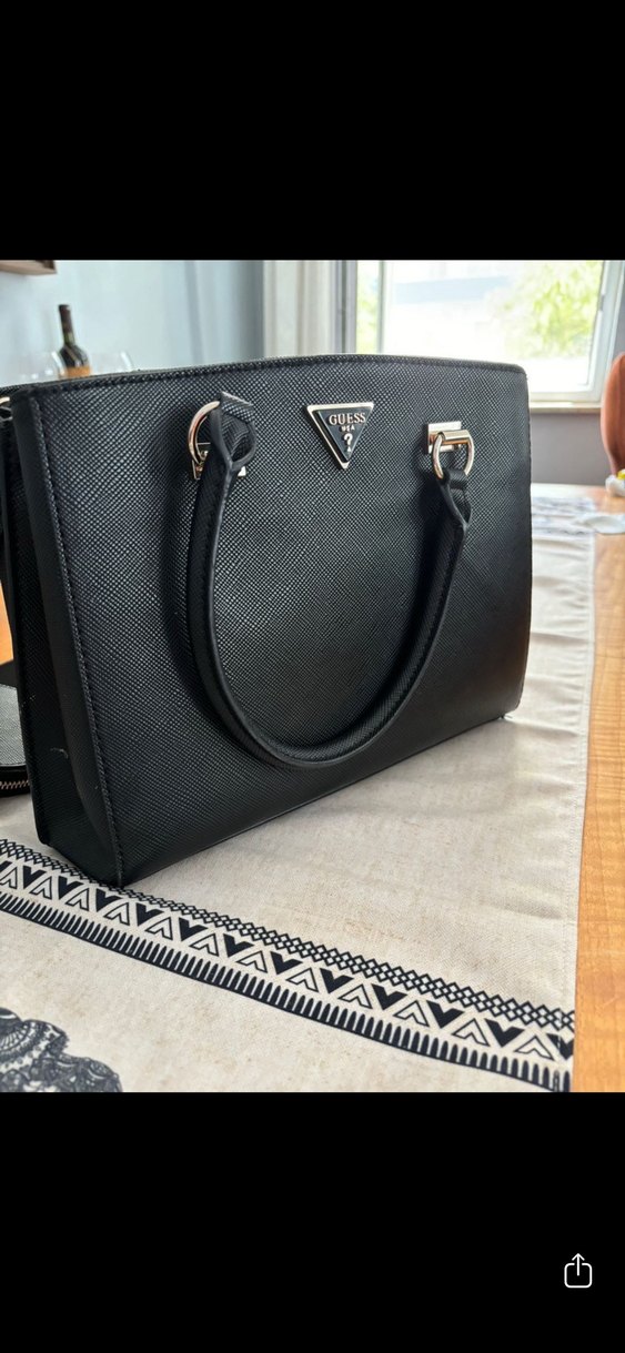 Siyah deri, parlak yüzeyli ve buckle detaylı çanta, baskılı dokusu ile çağdaş bir stil sunar. Klasik zarafet ve günlük iş kullanımı için uygun. Orijinaldir