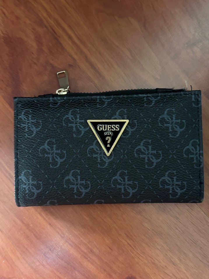 Guess mini cüzdan siyah logolu birkaç kere kullanıldı sorunsuz birden çok bölmesi kart yeri kağıt para ve ayrı fermuarlı bozuk para alanı mevcuttur portatif küçük çantalara ideal ürünlerimde iade yoktur.