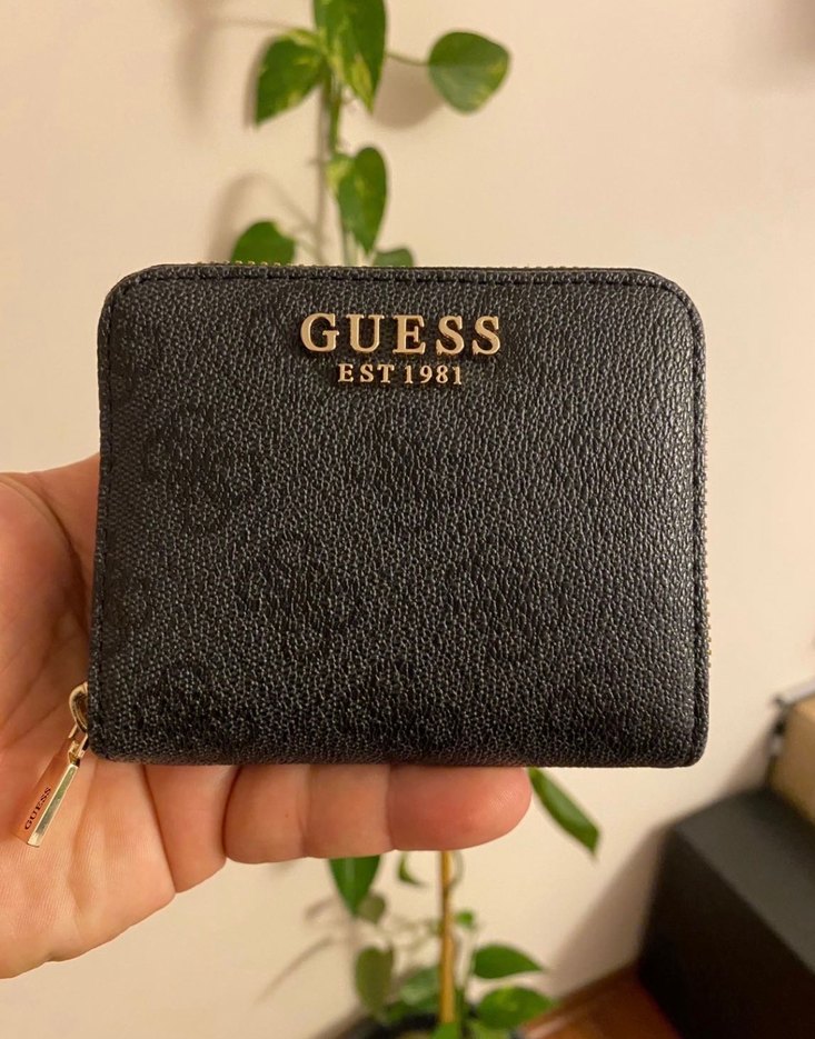 Merhaba. GUESS marka orijinal cüzdan çok az kullanıldı. Tertemiz ve hatasızdır. Barkod ile sorgulayabilirsiniz. Kod# SWSG8500137 Suni deri dış yüzey. Fermuarlı kapama. Donuk altın rengi metal detaylar. 4G logo desenli. İç kısımda düğmeli bozuk para cebi. Kart bölmeleri. Önde metal logo yazısı.