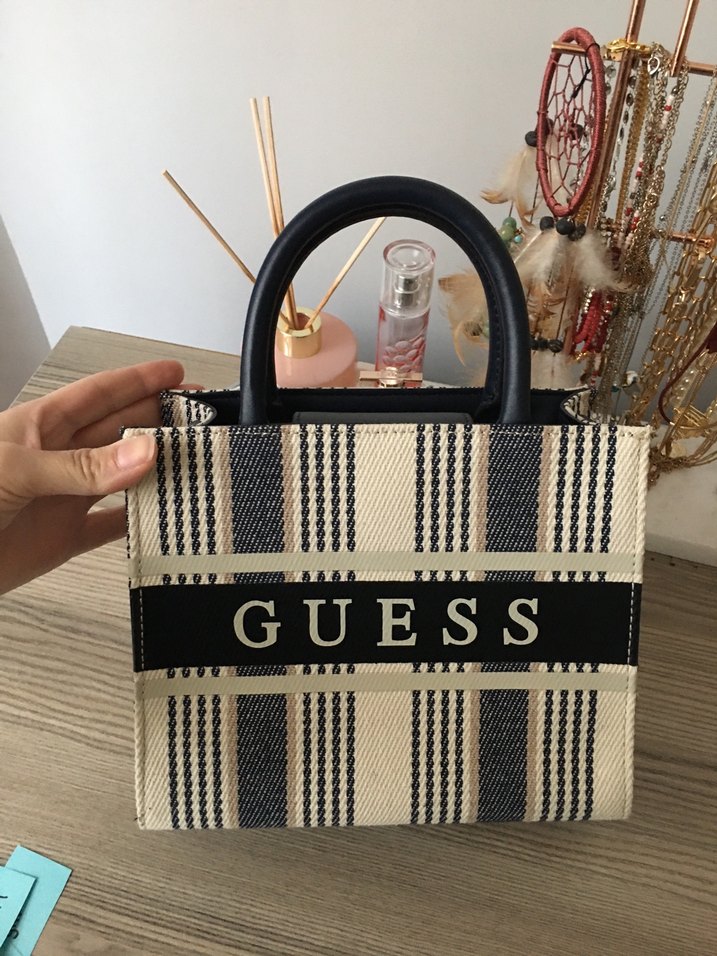 GUESS markalı, kemerli, sentetik kumaştan üretilmiş kadın çantasıdır. Trendy ve gündelik kullanıma uygundur.