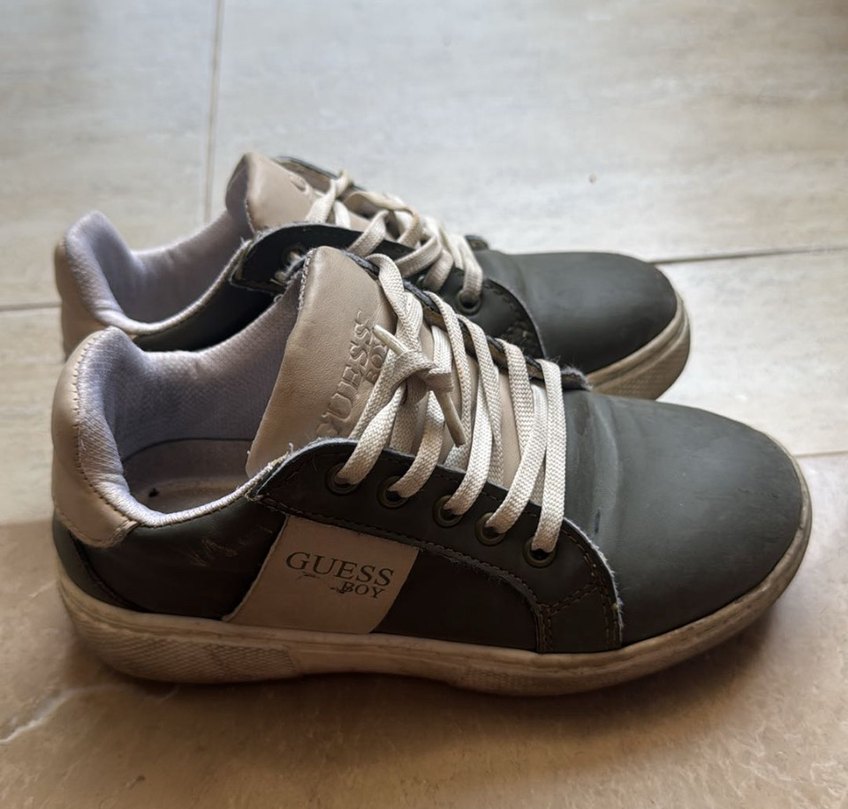 Guess gri erkek spor ayakkabılar, baskılı tasarım ve bağcıklı yapıya sahiptir. Kauçuk tabanıyla günlük kullanıma uygundur. Az burun kısmında sürtülme var