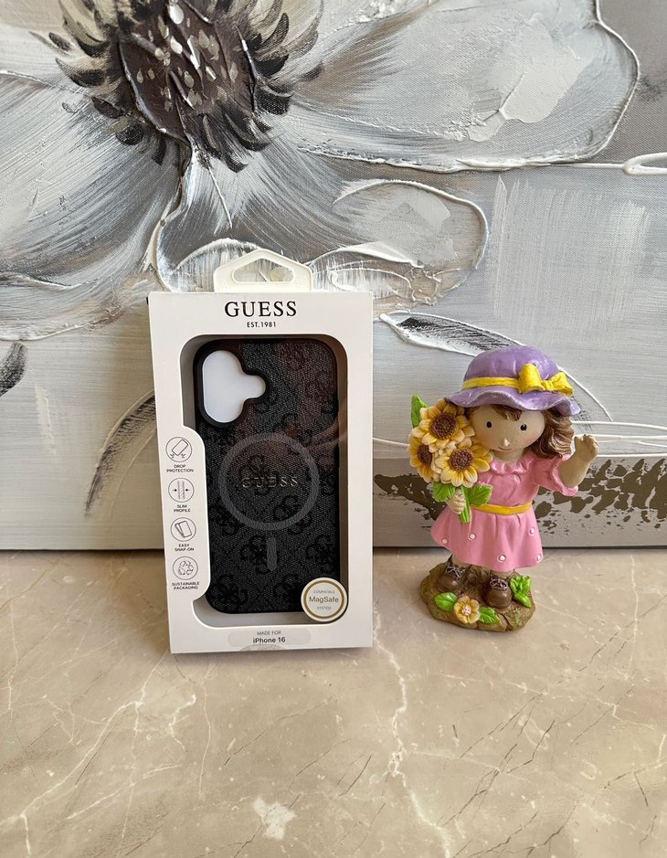 "Ürünün Stoğu Yoktur.Tek Adettir" GUESS marka, Yeni ve Kutulu, Antrasit/Siyah tonlarında, MagSafe uyumlu, 4G monogram logolu kaplama dokulu yüzey, MagSafe çemberi Gri renginde ve içindeki yazısı Altın(gold) renginde, darbelere dayanıklılığı ve esnek yapısı ile kullanım kolaylığı sağlayan Iphone 16 Telefon Kılıfı…. #iphone, #iphone16, #16, #telefon, #telefonkilifi, #kilifkapak, #yeni, #kutulu, #antrasit, #siyah, #gri, #altin, #gold, #guess